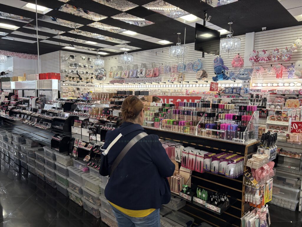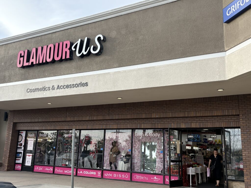En sus estantes, Glamour Us combina marcas populares latinas y estadounidenses, como Beauty Creations, Moira y Bissú, con joyería fina y accesorios para eventos.